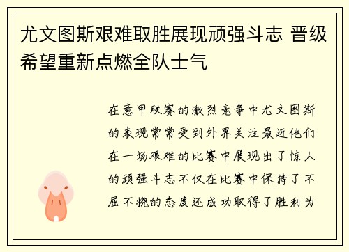 在意甲联赛的激烈竞争中,尤文图斯的表现常...
